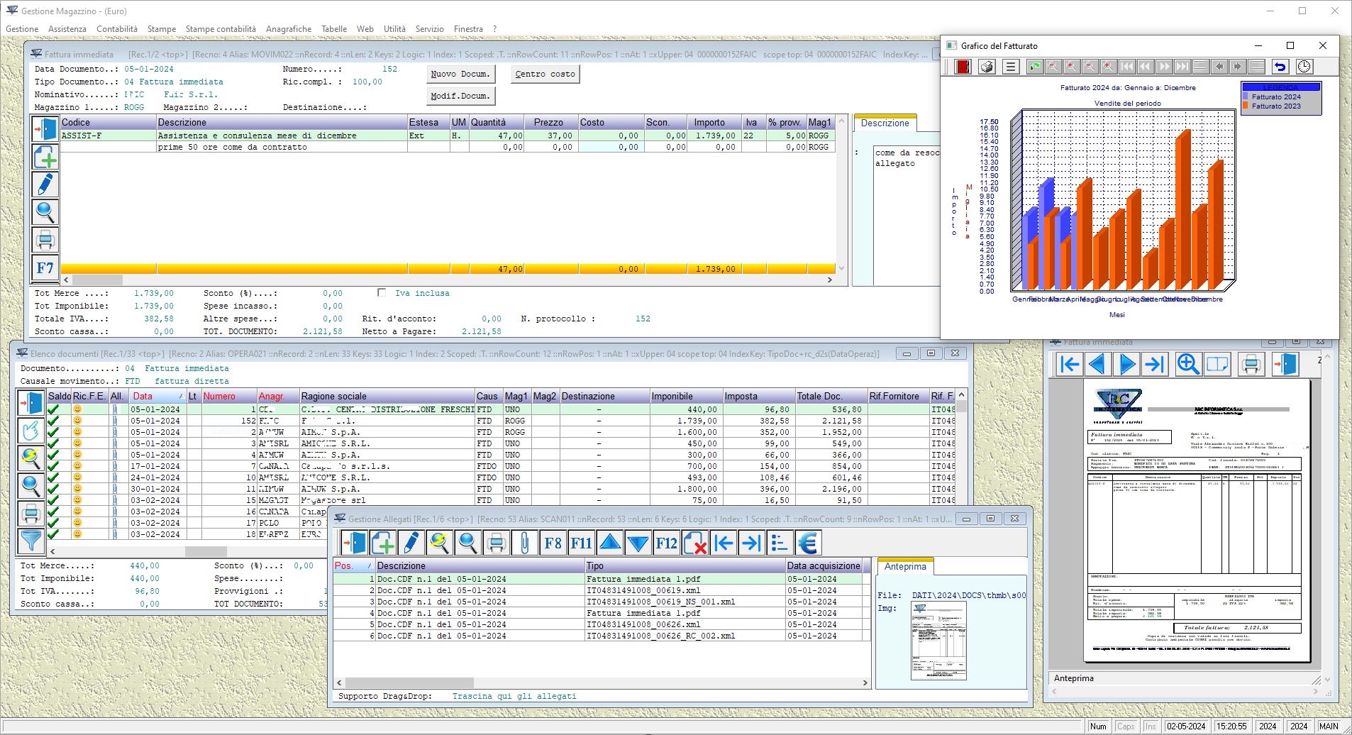 di modulistica e reportistica avanzata in vari formati tra cui files .pdf e .xls